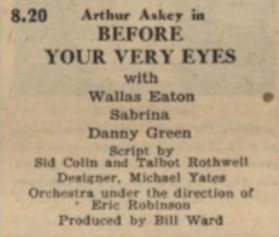 Sabrina premieres on Before Your Very Eyes with Arthur Askey.